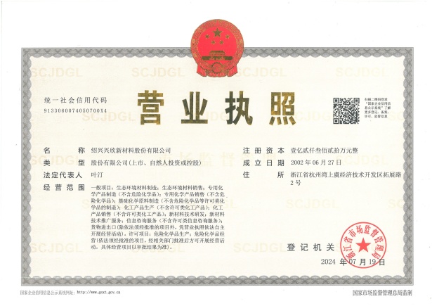紹興興欣新材料股份有限公司成立于2002年06月27日,占地面積122畝,位于杭州灣上虞經(jīng)濟(jì)技術(shù)開發(fā)區(qū)拓展路2號(hào),現(xiàn)有職工200余人,專業(yè)技術(shù)人員50余人;博士、碩士研究生30余人組成的一支知識(shí)型、專業(yè)化的技術(shù)科研團(tuán)隊(duì)。公司面向全球市場,專業(yè)開發(fā)電子化學(xué)品、環(huán)?;瘜W(xué)品、醫(yī)藥中間體、高分子材料等先進(jìn)新材料重點(diǎn)領(lǐng)域的省級(jí)科技型企業(yè);建有浙江上虞、安徽東至兩個(gè)生產(chǎn)基地。目前為“國家高新技術(shù)企業(yè)”、浙江省“隱形冠軍”企業(yè)、浙江省專精特新中小企業(yè);建有“省級(jí)”研究開發(fā)中心,共建天津大學(xué)浙江紹興研究院電子化學(xué)品研發(fā)中心。